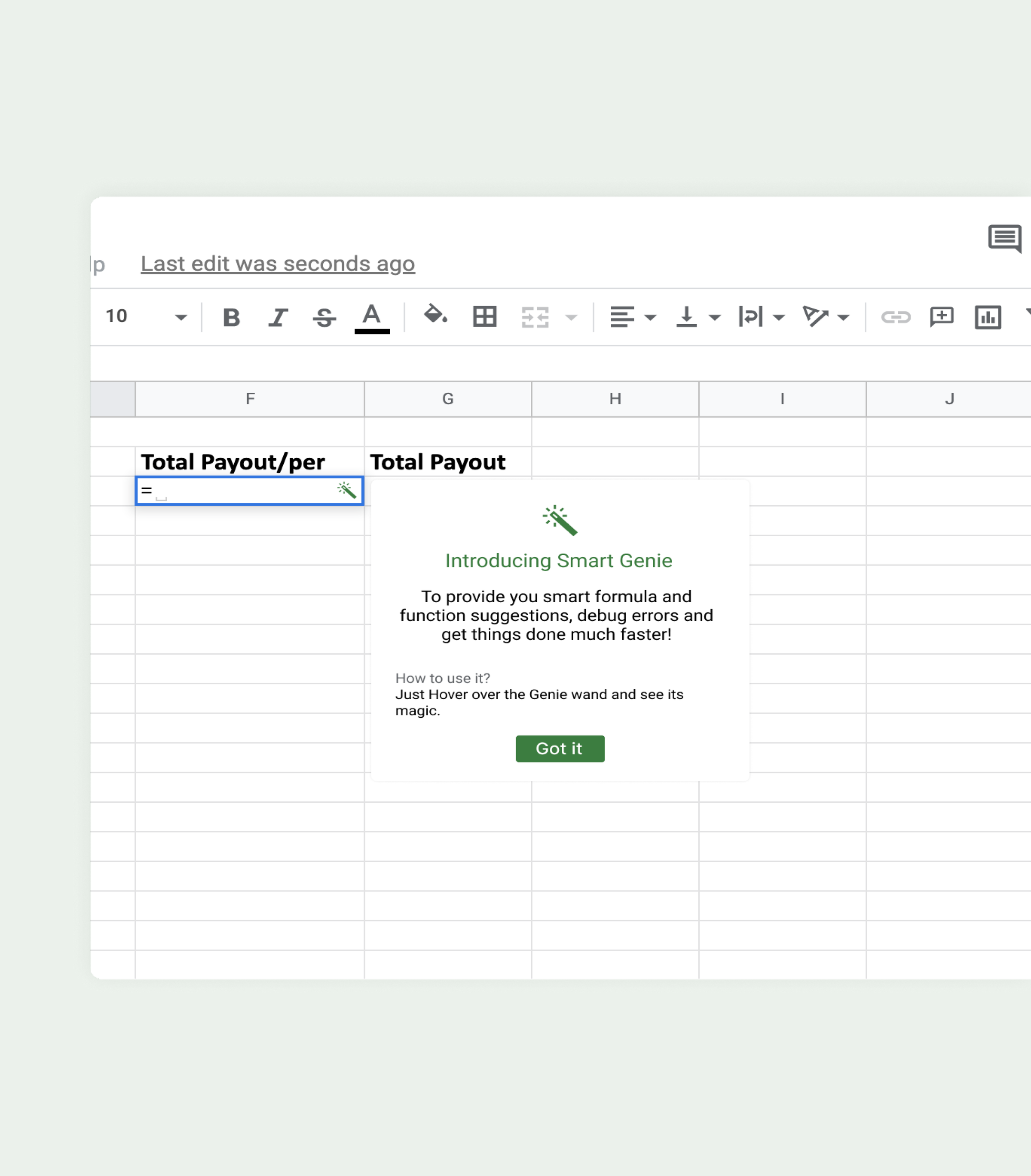 The Genie will be omnipresent in the journey within Google Sheets and will contextually show up automatically when it detects its need for the user.