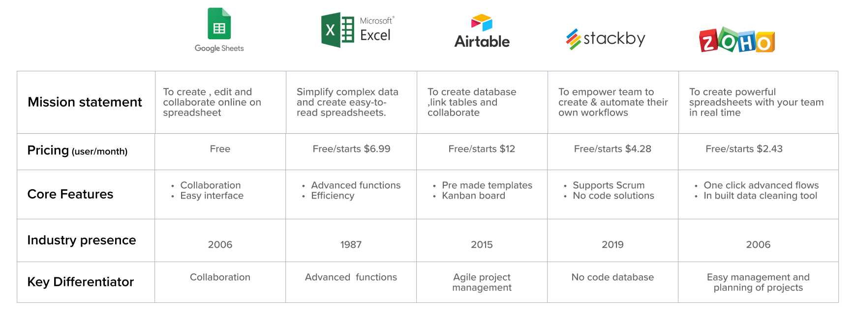 Understanding the landscape to evaluate the existing positioning of Google Sheets and asses the existing or upcoming competitors.