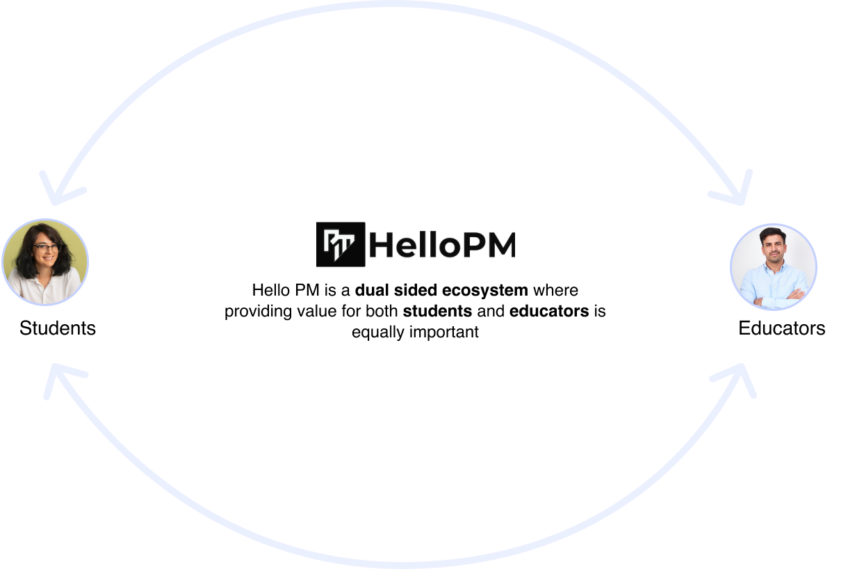 HelloPM is a dual sided ecosystem which can be divided into 2 major user segments i.e. Student and Educators based on the core functions.